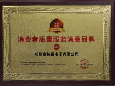 鄭州金特萊電子有限公司獲得2015消費者質(zhì)量服務滿意品牌證書